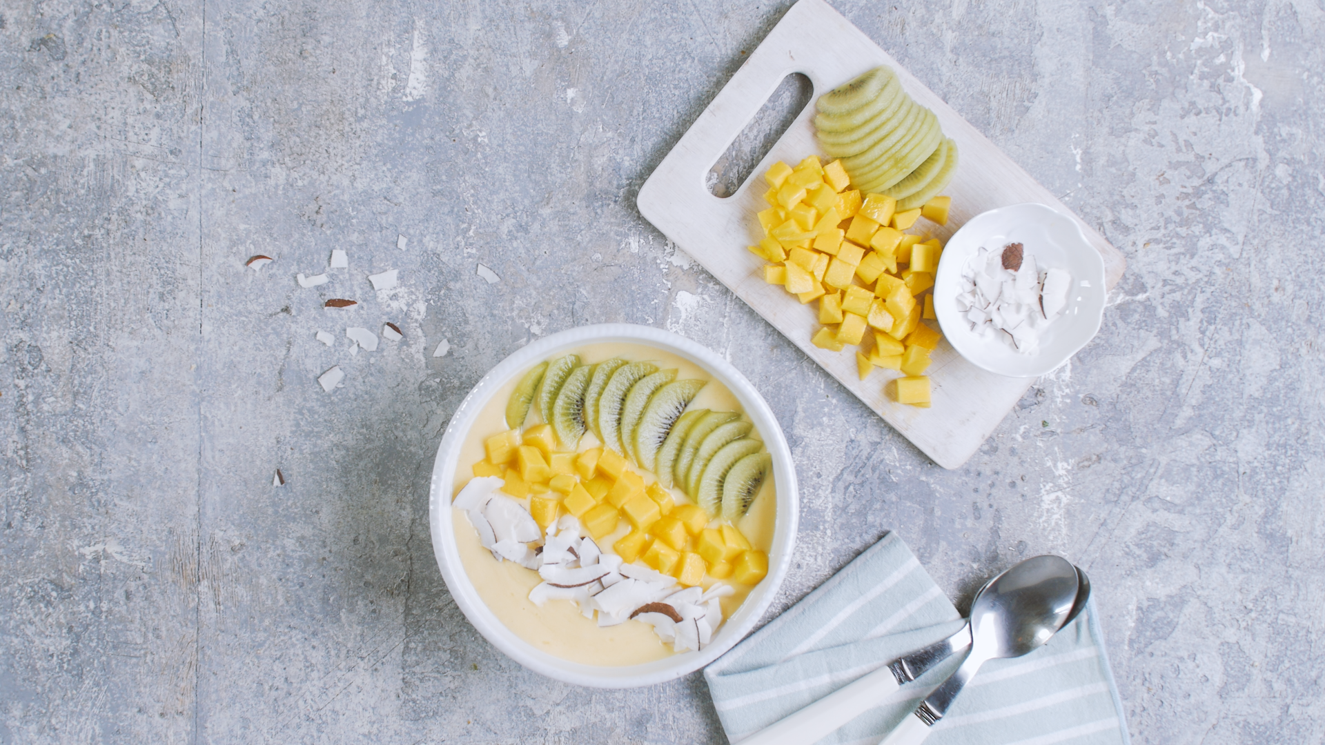 Ao pequeno-almoço a fruta dá as cartas na taça de manga e coco, um nutritivo cocktail colorido repleto de alimentos saudáveis, que vai saber ainda melhor se acompanhado por um presente especial feito pelos filhos: um miniálbum de fotos com legendas divertidas.